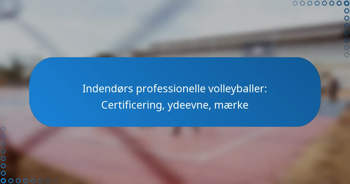 Certificeringsstandarder for indendørs professionelle volleyballer sikrer, at boldene opfylder specifikke præstations- og sikkerhedskriterier. Disse standarder fastsættes af styrende organer som den Internationale Volleyballforbund (FIVB) og nationale organisationer, der fokuserer på materialekvalitet, konstruktion og testprocedurer.
