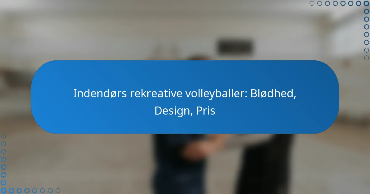 Indendørs rekreative volleyballer er fremstillet med varierende blødhedsniveauer for at imødekomme forskellige færdigheder, hvor blødere bolde er ideelle for begyndere, og fastere bolde foretrækkes af avancerede spillere. Deres design spiller en afgørende rolle i at forbedre præstationen, hvilket påvirker greb og kontrol under spil. Priserne spænder fra $10 til $50, hvilket giver muligheder for både afslappede spillere og seriøse entusiaster, afhængigt af de valgte materialer og funktioner.