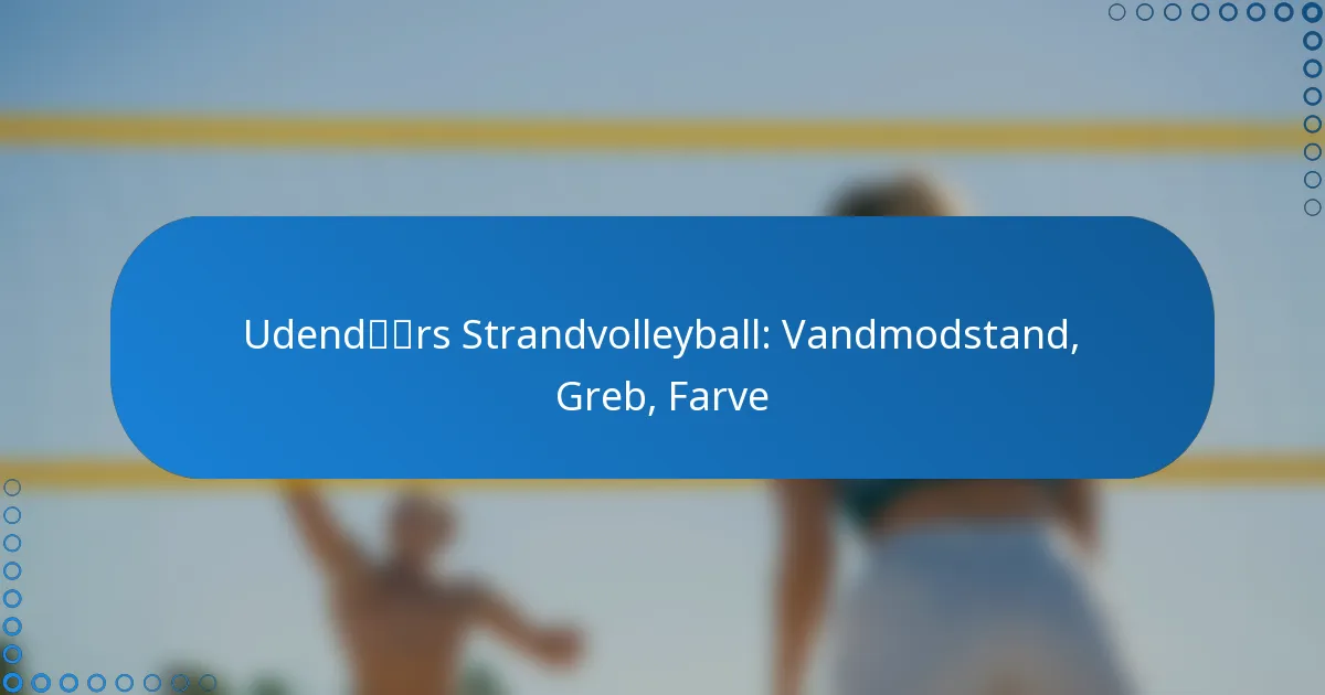 Udendørs strandvolleyballer er designet med specifikke egenskaber, der forbedrer præstationen i sandede og våde forhold. Nøglefunktioner inkluderer vandmodstand, greb og farvesynlighed, som alle har en betydelig indvirkning på spillet og spilleroplevelsen.