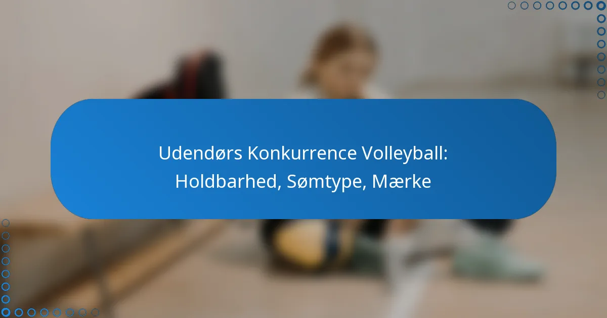 Når du vælger en udendørs konkurrencevolleyball, er holdbarhed nøglen, påvirket af materialets sammensætning, miljøforhold og korrekt vedligeholdelse. Valget af sømtype – syede eller limede – spiller også en væsentlig rolle for ydeevne og levetid. Bemærkelsesværdige mærker som Wilson, Mikasa og Spalding er kendt for deres højkvalitets volleyballer, hvilket sikrer, at spillere kan konkurrere effektivt, mens de nyder en længere brug.